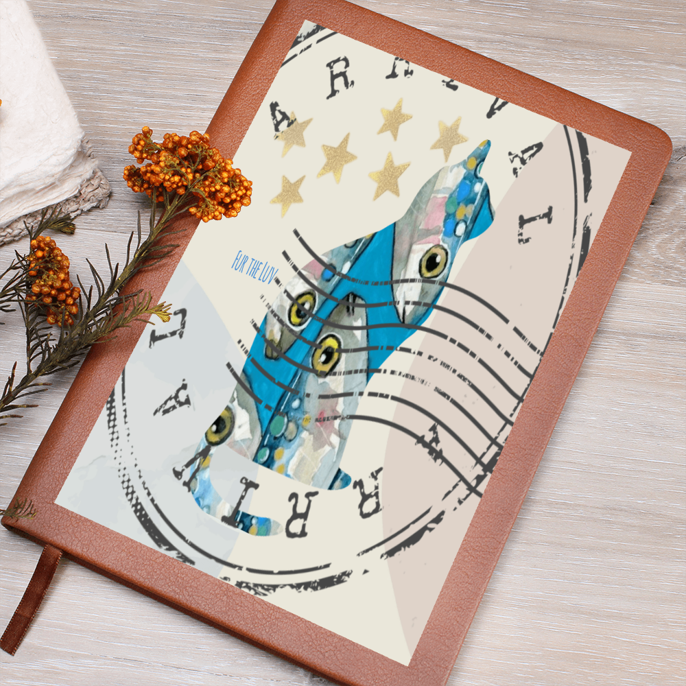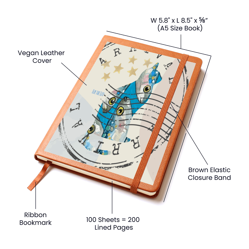 What better way to quiet your racing mind than with a clean slate? The Sardine Cat Postage Journal is the perfect accessory for personal reminders, goal setting, or just getting organized. This vegan leather notebook allows you to write on the go thanks to its lightweight design. Plus, swapping between your important pages is easy thanks to the ribbon bookmark and elastic closure band. The unique front is professionally printed with vibrant colors - making your design last as long as your to-do list!